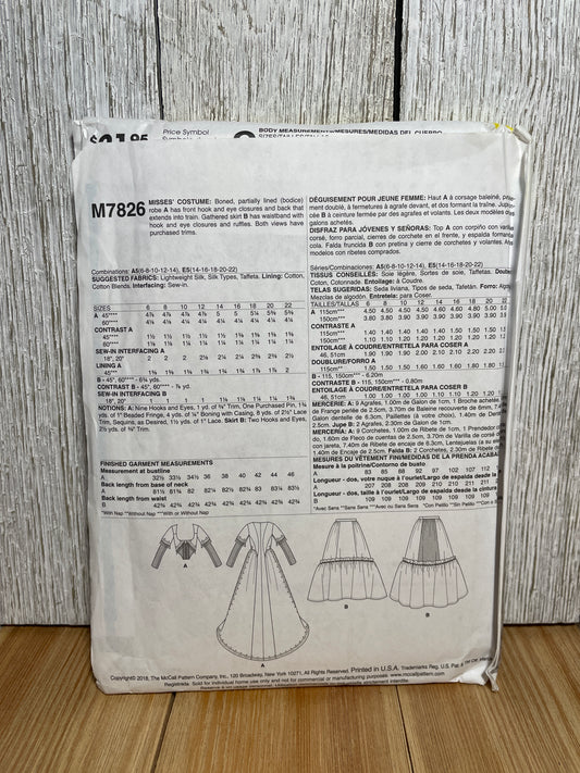 McCall's M7826 Renaissance Gown Costume Pattern Size 6-14 UNCUT FF Halloween