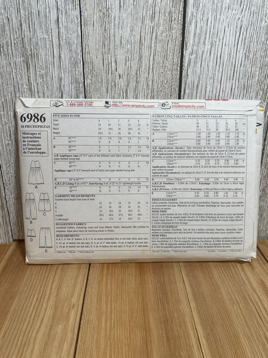 New Look 6986 For Kids Summer Romper, Dress, Stretch Pants, and Tank Top Pattern Size 1/2-4 UNCUT FF