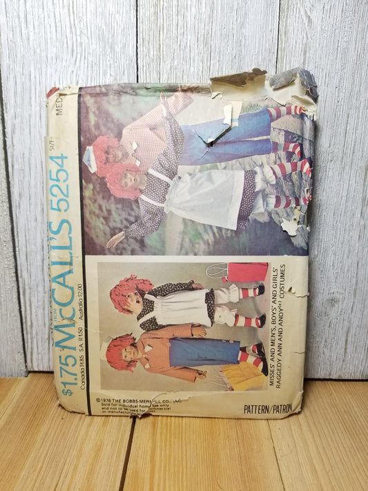 McCall's 5254 Raggedy Ann & Andy Costumes Adult Medium Uncut FF 1976