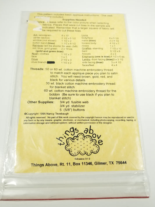 As it Was in the Days of Noah #316 Animal applique pattern sewing pattern from things above