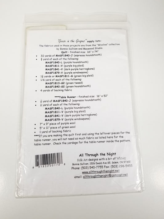 All Through the Night Geese in the Grapes Quilt Pattern #624