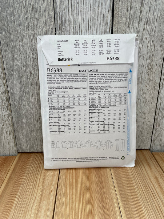 Butterick B6388 Misses Vest Top Dress Pants Sizes 4-14 Uncut FF Sewing Pattern