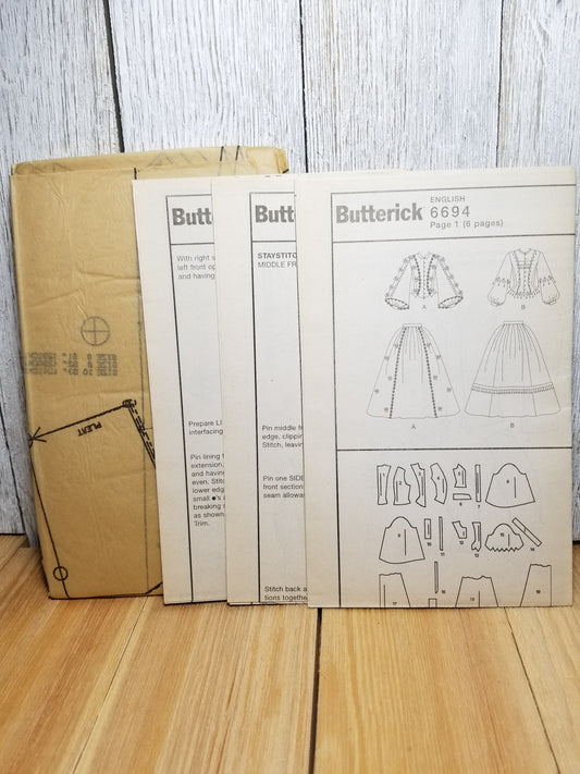 Butterick 6694 Making History Top and Skirt Sizes 6-8-10 Vintage Sewing Pattern Uncut FF