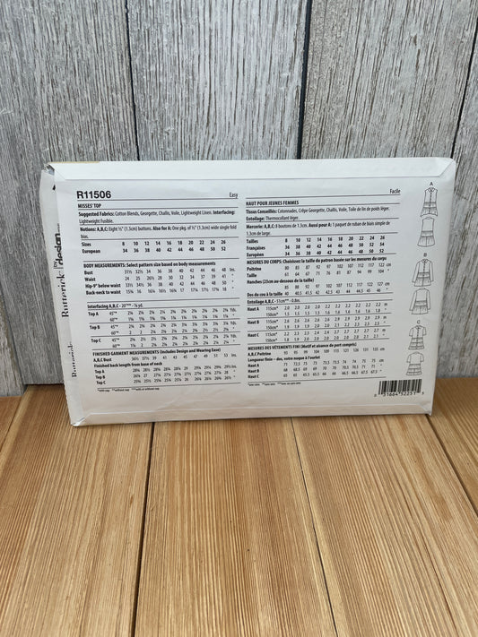 Butterick R11506 Misses Tiered Top Size 18-26 Uncut FF Sewing Pattern