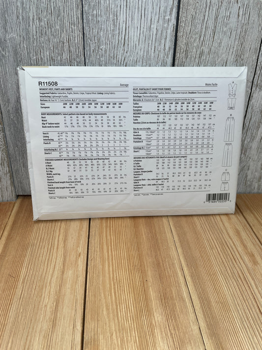 Butterick R11508 Women Vest Pants Shorts Size 30W-38W Uncut FF Sewing Pattern