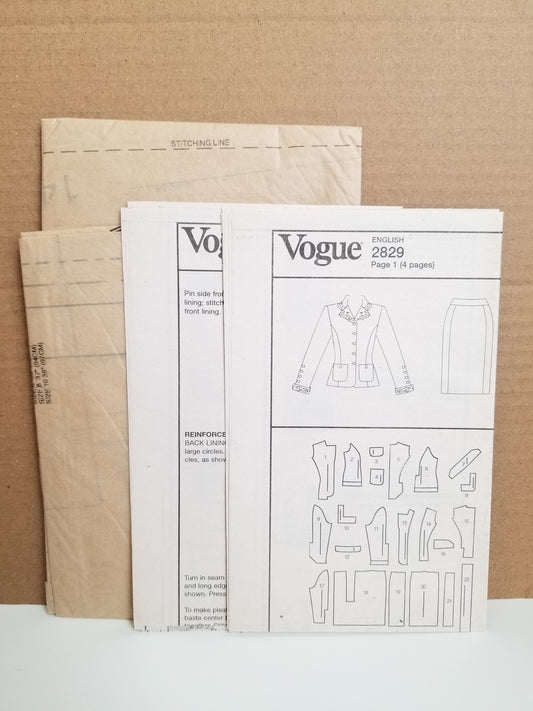 Vogue V2829 Misses Petite Business Two-Piece Suit Jacket and Skirt Size 6-10 Pattern Uncut FF