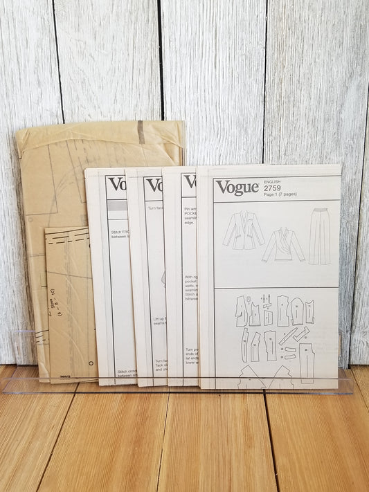 Vogue 2759 Business Two-piece Suit Anne Klein Below Hip Jacket, Wrap Top, Straight Legged Pants Size 6-10 Uncut FF