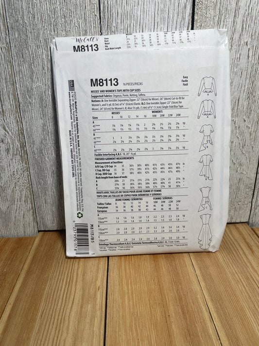 McCall's M8116 Misses Busier Romantic Top Coset Style Size 6-14 Uncut FF Sewing Pattern