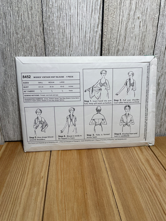 Simplicity 8452 Misses 1950's Inspired Knit Blouse Size S-L Uncut FF Sewing Pattern