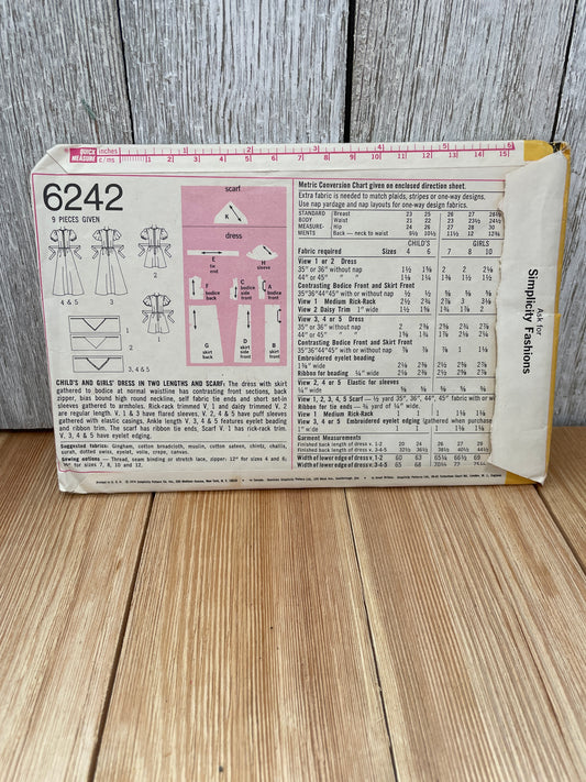 Simplicity 6242 Child Girl Dress and Scarf Costume Size 7 Uncut FF Sewing Pattern