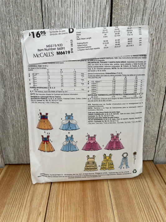 McCall's M6619 Child Princess Costume Size 3-8 Uncut FF Sewing Pattern Halloween