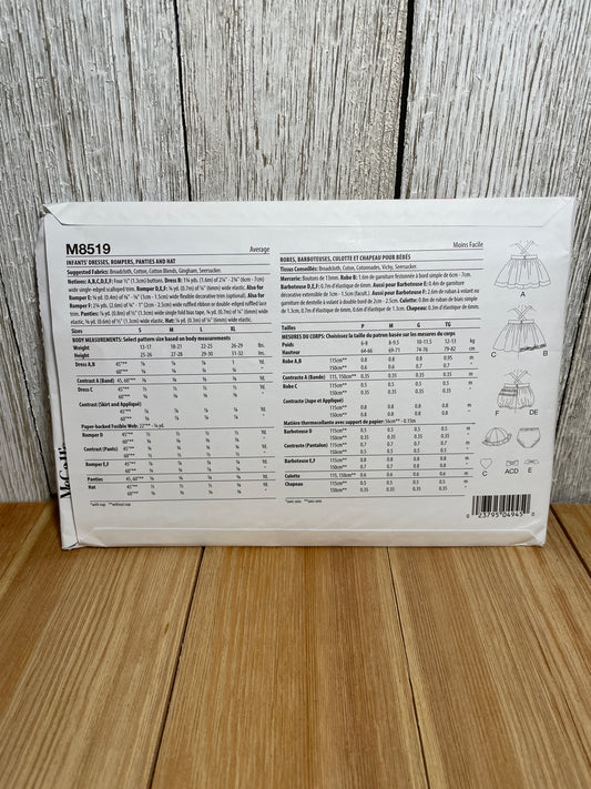 McCall's M8519 Infants Dress Romper Panties and Hat Laura Ashley Size S-XL Pattern Uncut FF