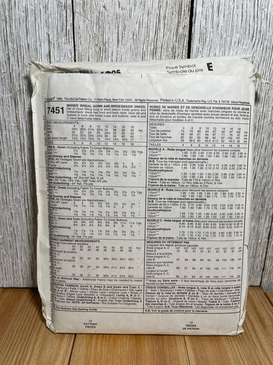 McCall's 7451 Wedding Dress Bridesmaid Dress Alicyn Exclusives Size 4 Pattern Uncut FF