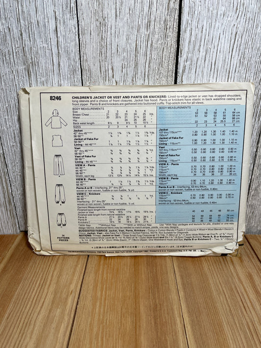 McCall's 8246 Children's Jacket Vest Pants Knickers Size 2 Pattern Uncut FF