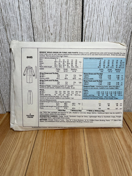 McCall's 6445 Wrap Dress Tunic and Pants Robe Size Medium 14-16 Pattern Uncut FF