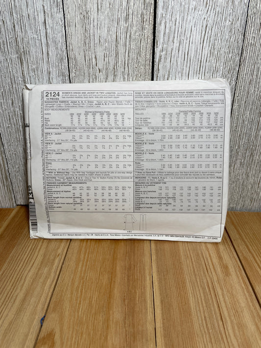 McCall's 2124 Dress Jacket Duster Skirt with Slit Size 18W-40 Pattern Uncut FF