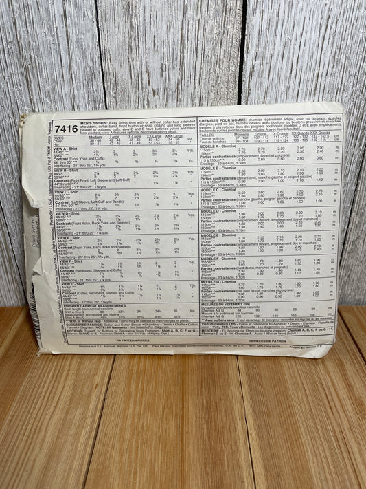 McCall's 7416 Cowboy Country Shirt Men's Size 46-48 Pattern Uncut FF
