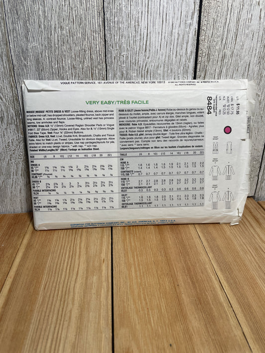 Vogue 8484 Misses Dress and Vest Size 12-16 Uncut FF Sewing Pattern