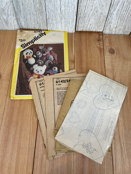 Simplicity 6142 Four Chic Stuffed Bears Transfers included Pattern UNCUT FF
