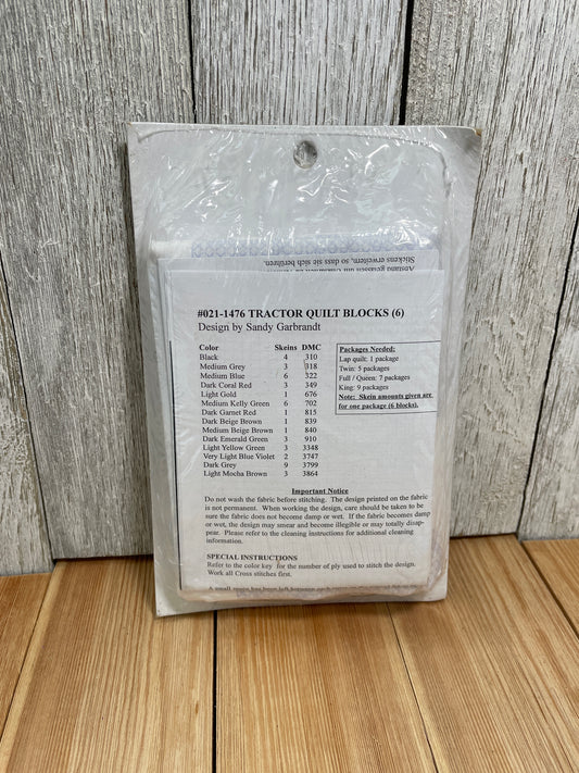 Janlynn Tractor Quilt Blocks #021-1476 Stamped Cross Stitch NEW UNOPEN