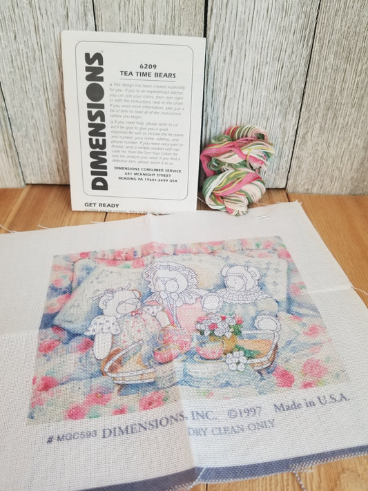 Dimensions Tea Time Bears 6209 Gallery Crewel Embroidery Kit Missing Yarn
