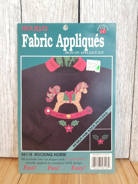 Vintage Holiday Fabric Appliques Rocking Horse Iron on Applique 56118
