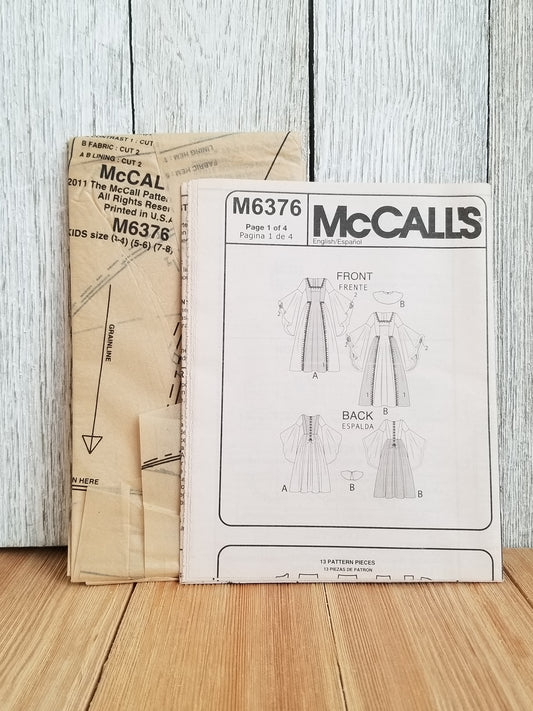 McCalls M6376 Medieval Theatre Princess Gown Wide Sleeves Costume Halloween Pattern Size Kids 3-8 UNCUT FF