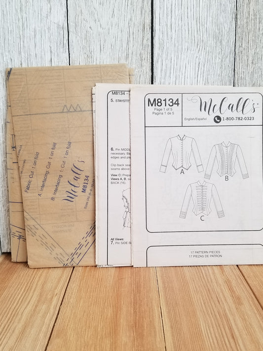 McCalls M8134 Victorian Shirt Close Fitting Button Front Basque Top Costume Halloween Pattern Size 6-14 UNCUT FF