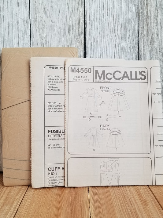 McCalls M4550 Dramatic Coat Vampire Cape Costume Halloween Pattern Size XN xlg-XXxl UNCUT FF