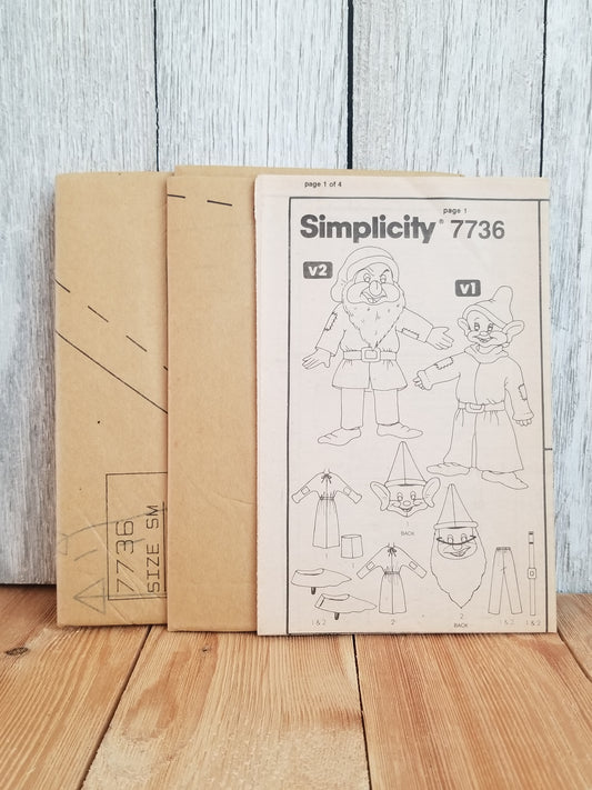 Simplicity 7736 Official Disney Dopey Grumpy Dwarf Halloween Costumes Pattern Size Small UNCUT FF
