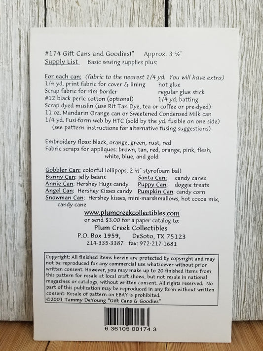 Plum Creek Collectables Gift-Cans and Goodies #174 Pattern Applique covered cans Holiday