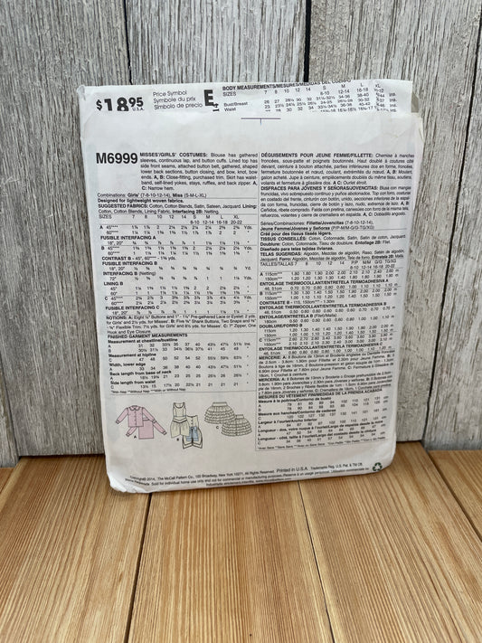 McCall's 6999 Girl Misses Dancer Pirate Size 7-14 or Sml-Xlg Uncut FF Sewing Pattern Halloween Costume