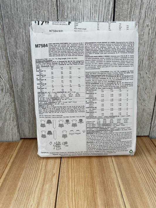 McCall's M7584 Child and Dog Halloween Costume Size 3-7 PRINCESS Uncut FF Sewing Pattern
