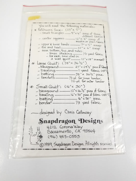 Snap Dragon Designs Christmas Sock stocking and quilt pattern 1989