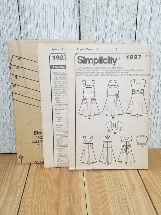 Simplicity 1927 Girls Summer Dress Sunday Best Size 7-16 Uncut FF Sewing Pattern