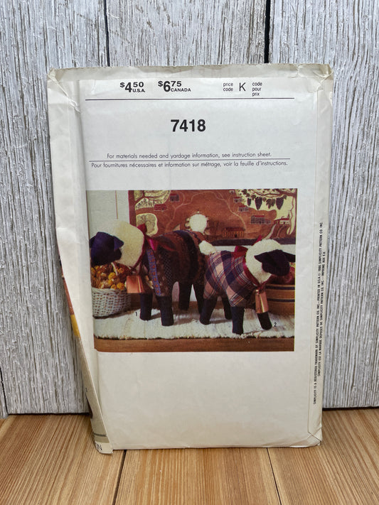 Simplicity Crafts 7418 Adorable Stuffed Sheep Toy in Two Sizes Pattern UNCUT FF