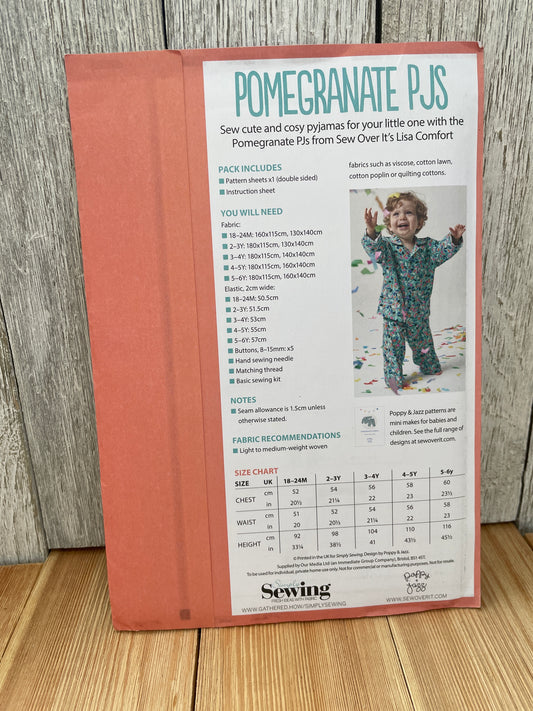 Simply Sewing Pomegranate PJs Child Size 18m-6y Uncut FF Sewing PatternRegular price $6.50 USDRegular priceUnit price / per-