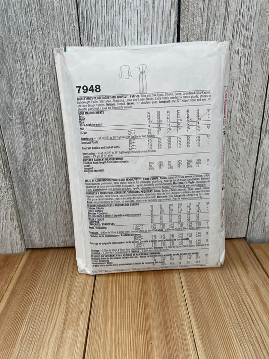 Simplicity 7948 Misses Petite Jacket & Jumpsuit Size 14-24 Uncut FF Sewing PatternRegular price $6.50 USDRegular priceUnit price / per-