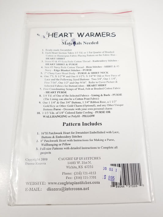 Caught up in Stitches Heart Warmers 16" and 8" Applique Patchwork heart Pattern UNCUT