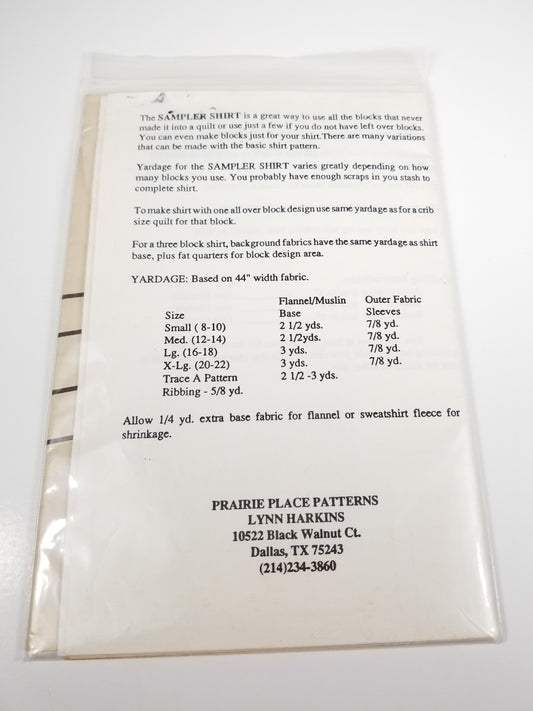 Quilter's Sampler Shirt Sewing Pattern quilt shirt pattern