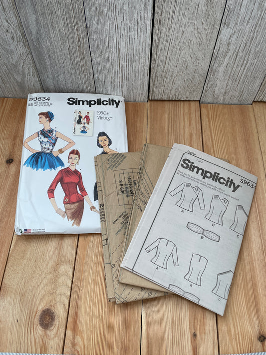 Simplicity S9634 1950's Vintage Blouses and Cummerbund Pattern Size 16-24 UNCUT FF