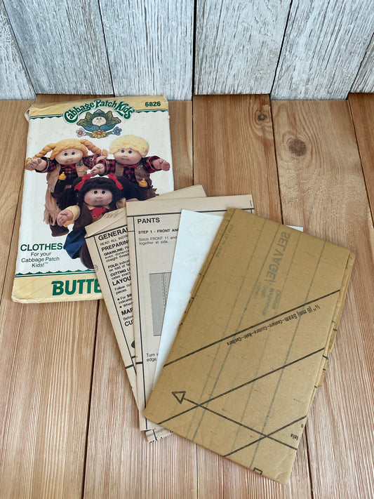 Buttrick 6826 Cabbage Patch Kids Clothes Pattern and Transfers Wester Cowboy Outfit UNCUT FF