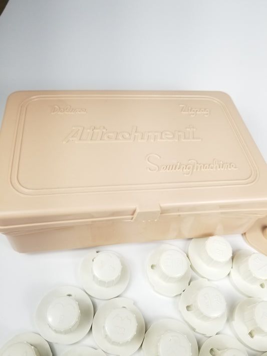 Deluxe Zigzag Sewing Machine Attachments 29 attachments box and plate