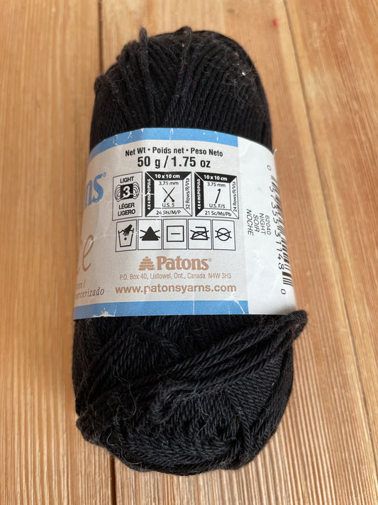 Patons Grace Mercerized Cotton Yarn Night Black Cotton Yarn Full Skein
