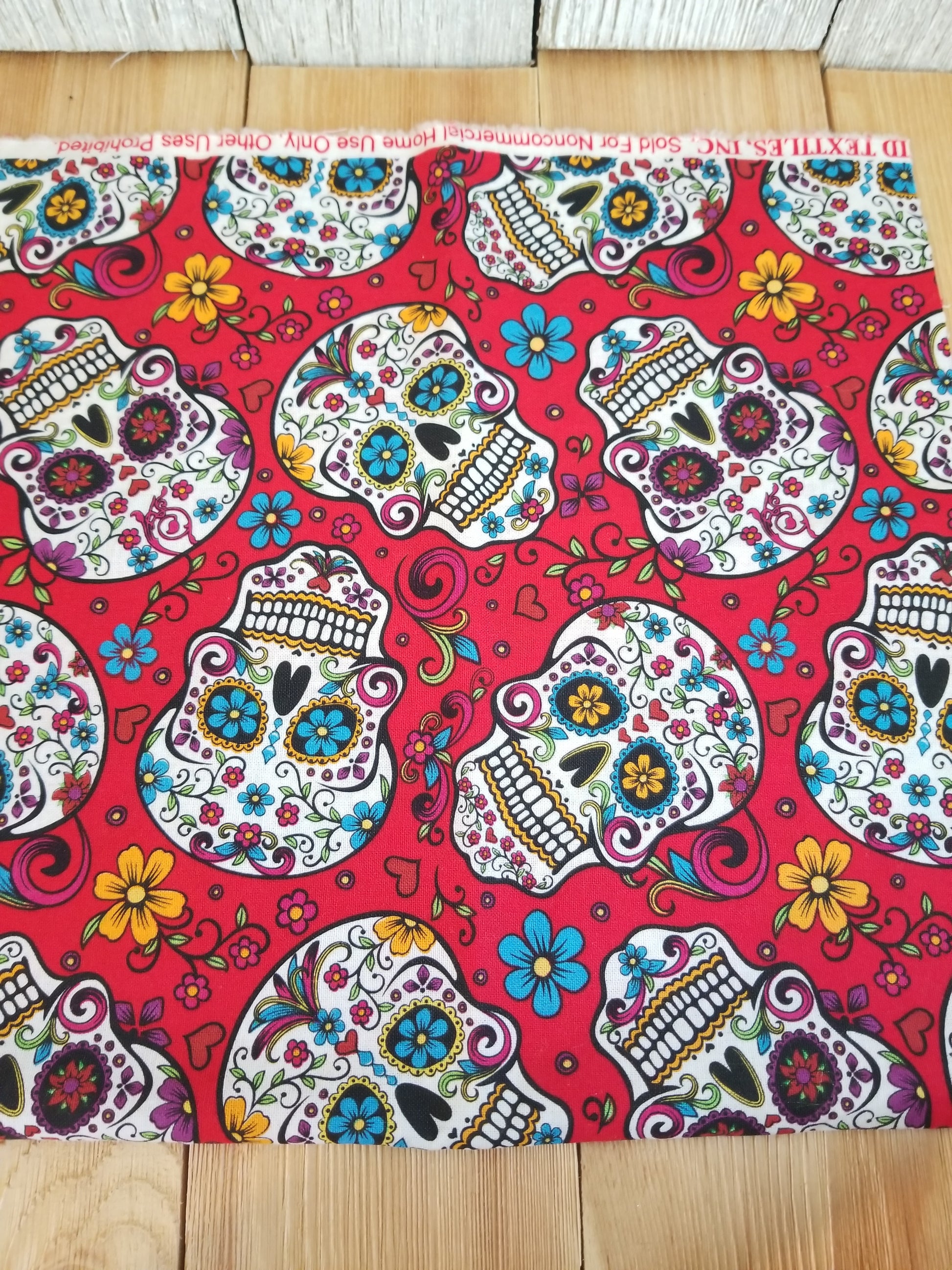 Red Day of the Dead Skull (Davids textiles): 20"x10.5" No cut outs