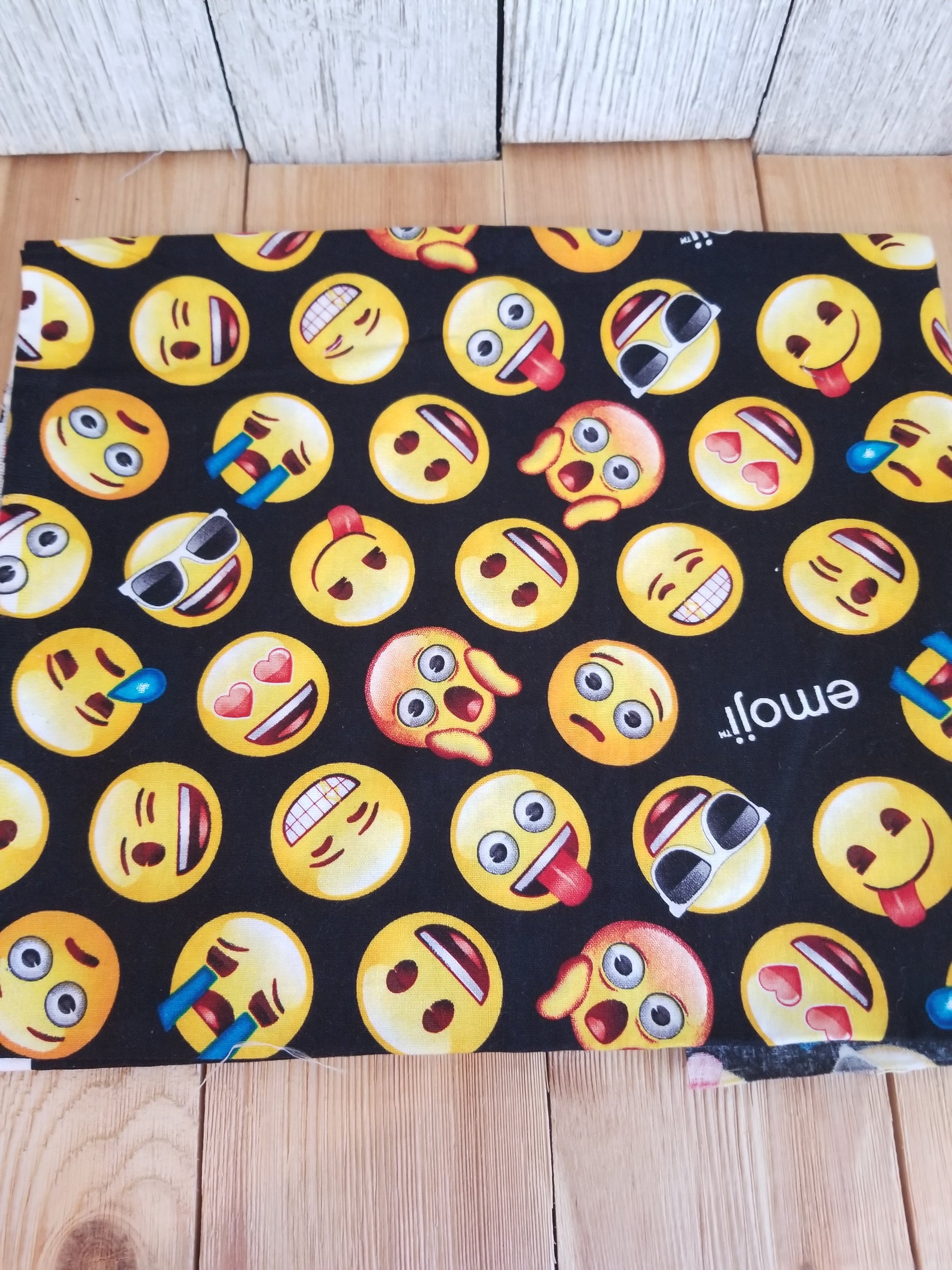 Emoji (2015 Davids textiles): 1 Piece. 33"x16" With quite a few cut outs along the edges 19"x7" on both sides and 3"x5" on both sides