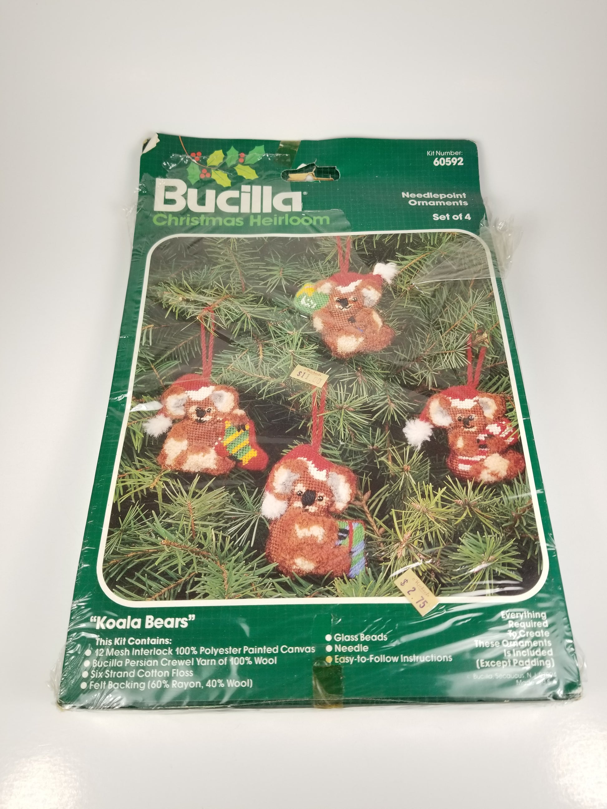 NOS Bucilla Christmas Ornaments Needlepoint Koala Bears 60592