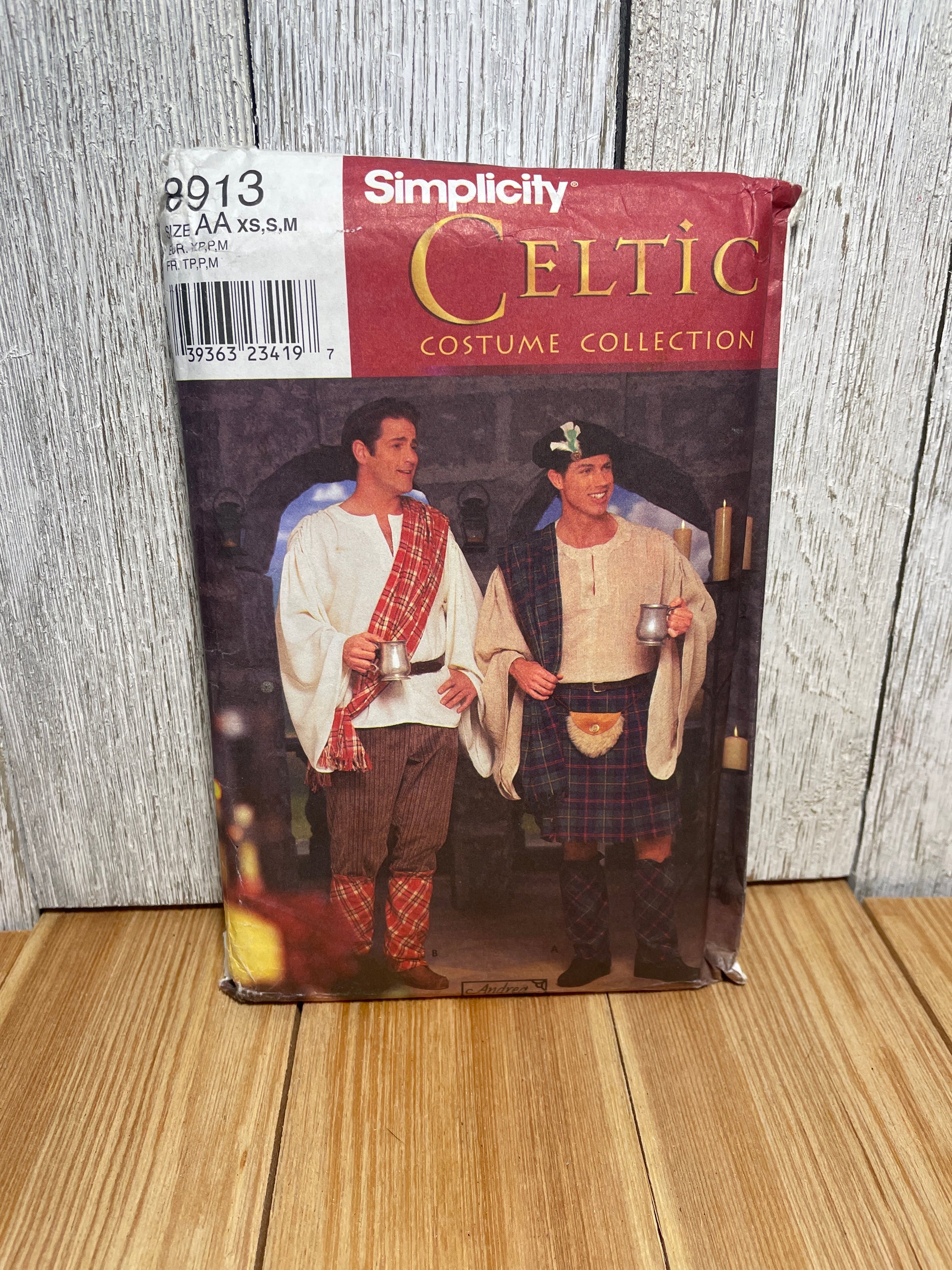 Simplicity 8913 Men's Celtic Costume Collection XS,S,M Sewing Pattern Uncut FF