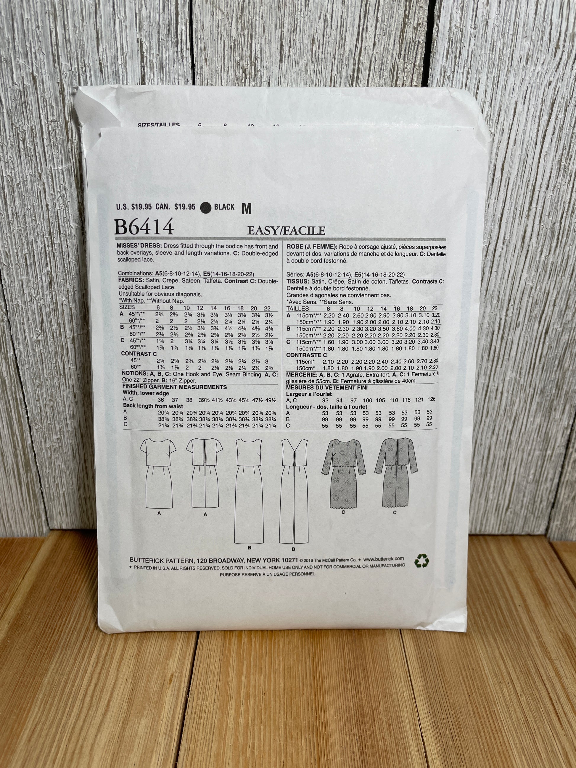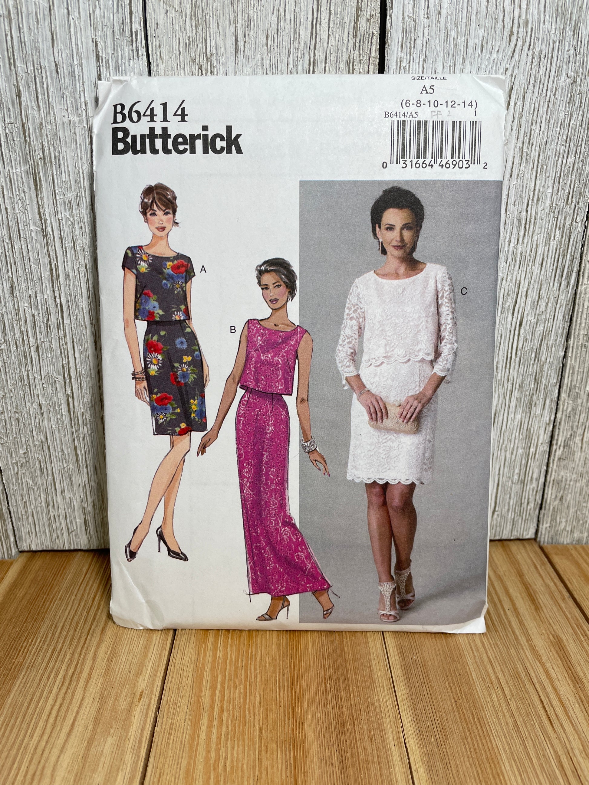 Butterick B6414 (6414) Fitted Bodice with Overlays Build in Jacket Dress Size 6-14 Pattern Uncut FF
