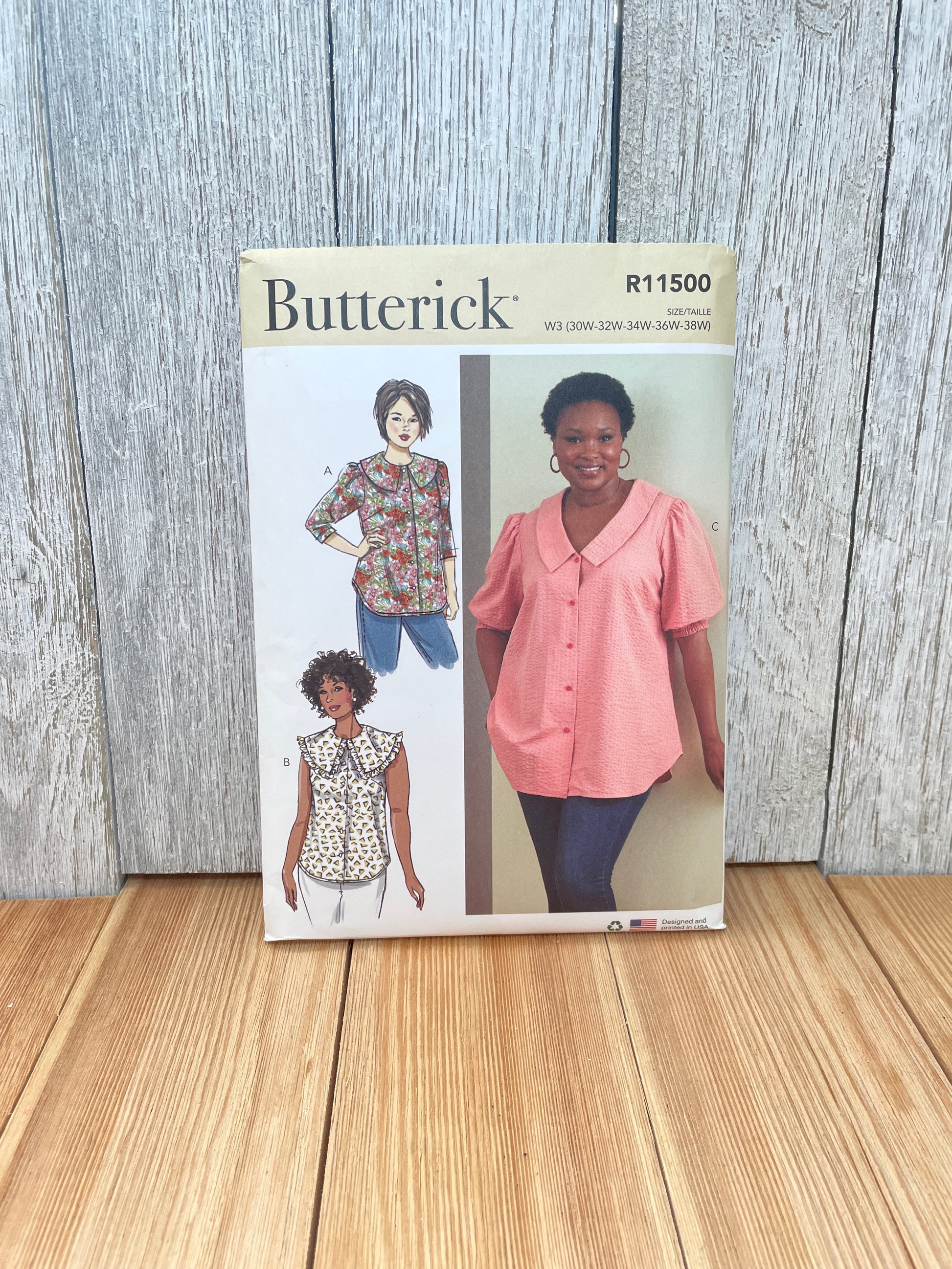 Butterick R11500 (11500) Women Top with Collar Button Up Size 30W-38W Uncut FF Sewing Pattern